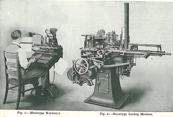 The two great revolutions in printing of the years between 1900 and 1950 were linotype and monotype. The Linotype machine was 1st installed on the New York Tribune in 1886; Monotype was invented 3 years later in 1889 but only commercially established in 1897.